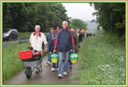 Schubkarren werden geölt und für den Umzug vorbereitet.