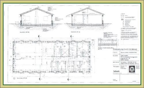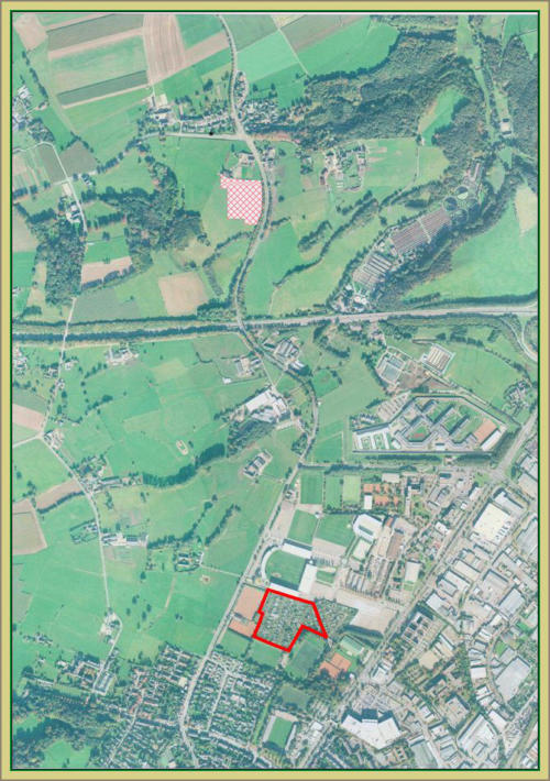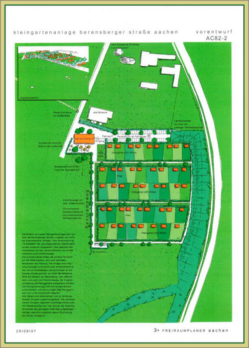 Der neue Standort im Luftbild Der neue Standort im Katasterplan Alter und neuer Standort im Luftbild Entwurf der neuen Anlage Ausführungsvariante Das neue Vereinsheim Das Vereinsheim im Grundriss Laube "Daun" Typ-A Laube "Daun" Typ-B Der Lageplan der neuen Anlage Sportpark-Soers